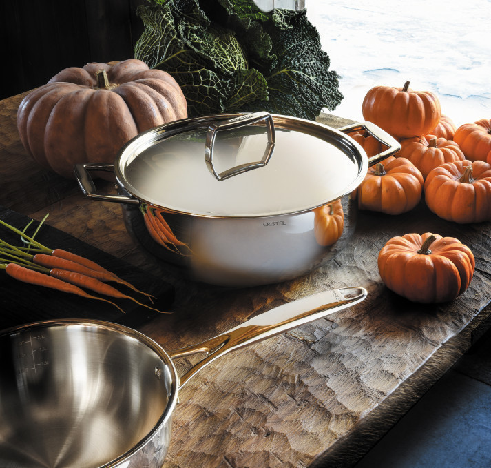 Anse large en inox massif pour une parfaite pré.hension. Siglé.e CRISTEL.