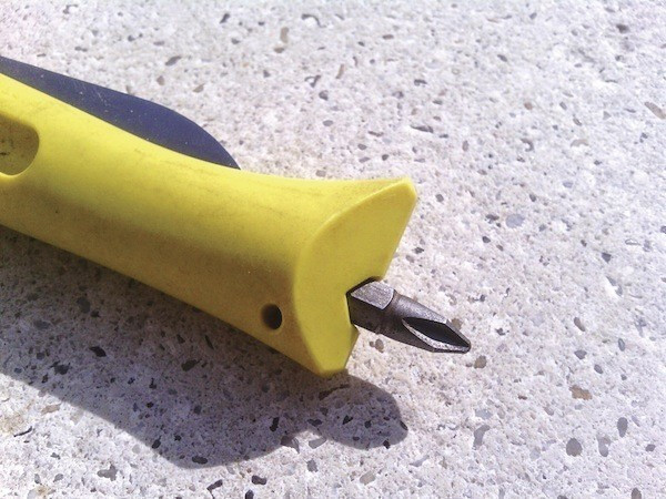 - Deux embouts tournevis sont inté.gré.s dans le manche et peuvent ê.tre placé.s en bout pour une meilleure prise pour visser.
