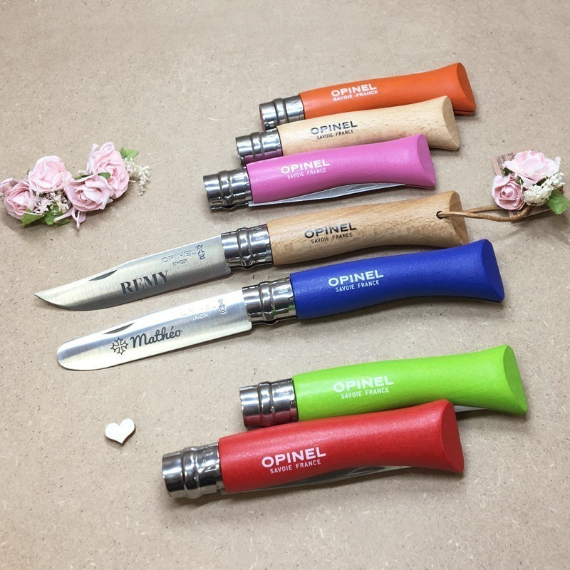 Le couteau de poche Opinel se transmet de gé.né.ration en gé.né.ration. Il est aujourd'hui disponible avec une lame au bout rond destiné. aux plus jeunes. Sa lame coupante permet de tailler des bâ.tons de bois, couper des ficelles, couper du carton, construire cabanes et sculpter de petits objets de bois. La virole double sé.curité. permet de bloquer la lame en position fermé.e ou ouverte. Objet coupant, Mon Premier Opinel doit ê.tre utilisé. sous la surveillance et avec les conseils des parents. Disponible en plusieurs coloris.