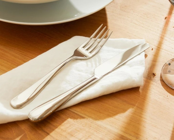 La coutellerie Nuovo Milano, conç.ue par Ettore Sottsass, est dé.sormais un classique. L'auteur voulait que ces couverts soient «lisses comme une pierre de la mer», avec une forme douce et arrondie. Le service Nuovo Milano est lauré.at du XV Compasso d'oro (1989).