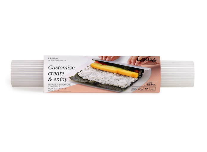 Vous voulez pré.parer des makis ? Le tapis en silicone Makisu vous aide à. enrouler vos pré.parations, japonaises ou non, facilement et de maniè.re hygié.nique. Il est antiadhé.sif et ne conserve ni le goû.t, ni l'odeur.